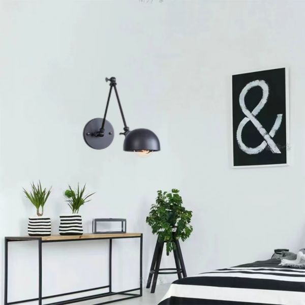Industrial Vintage Swing Arm Wall Sconce, Adjustable Metal Reading Lamp with Dome Shade - 16" 110V-120V Black