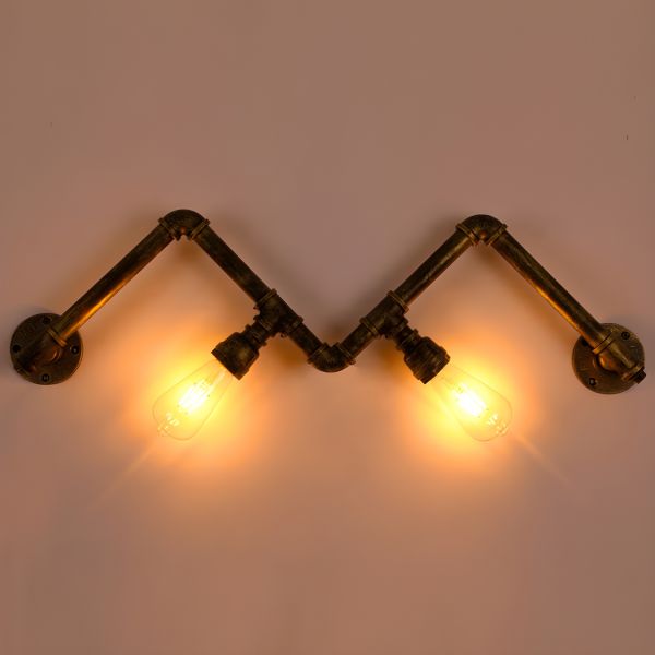 Industrial Steampunk Water Pipe Wall Sconce, Rustic Metal Vanity Light for Bathroom or Loft - Metallic 110V-120V 2