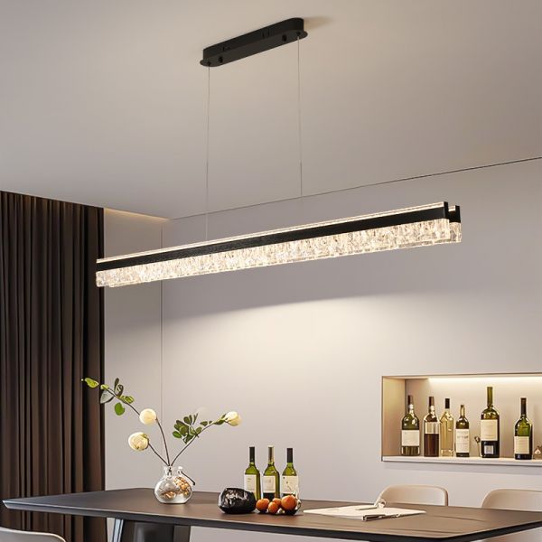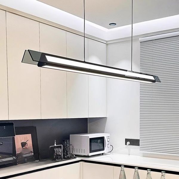 Island Light Fixture with Linear Polymer Shade, Pendant Bar Mounting, Direct Wired Electric for Residential Use, Versatile Hanging Length