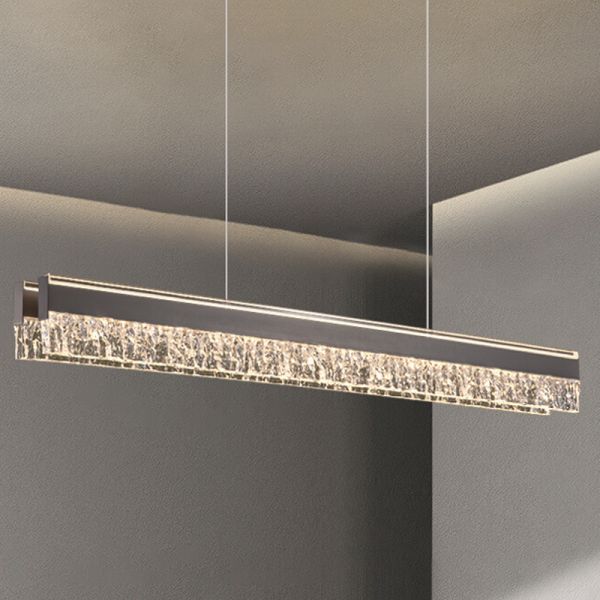 Translucent Island Light Fixture, Rectangular Design, Direct Wired Electric, Polymer Shade, Third Gear Color Temperature for Residential Use, Versatile Hanging Length