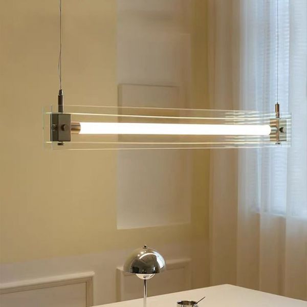 Island Light Fixture with 2 Lights, Linear Silica Gel Shade, Direct Wired Electric for Residential Use, Versatile Hanging Length