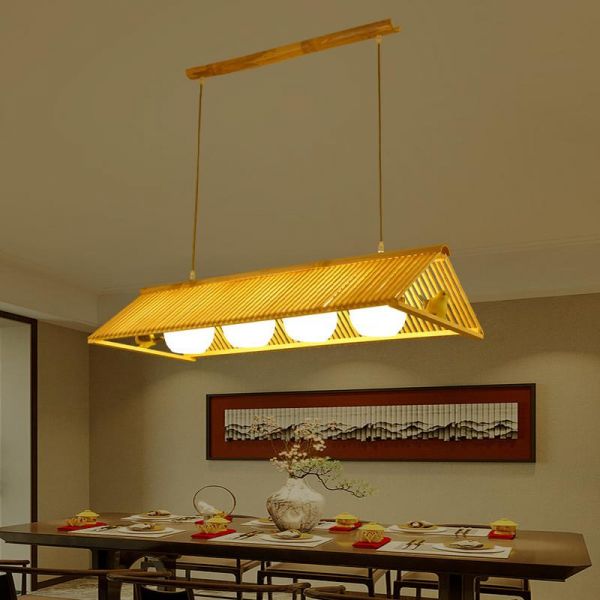 Island Light Fixture with Translucent Shade, Rectangular Design, Direct Wired Electric, Polymer Material for Residential Use, Versatile Hanging Length