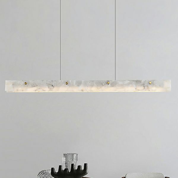Contemporary Linear LED Island Chandelier, Faux Alabaster Bar Pendant with Gold Accents