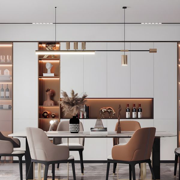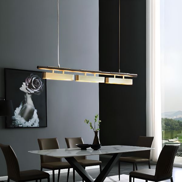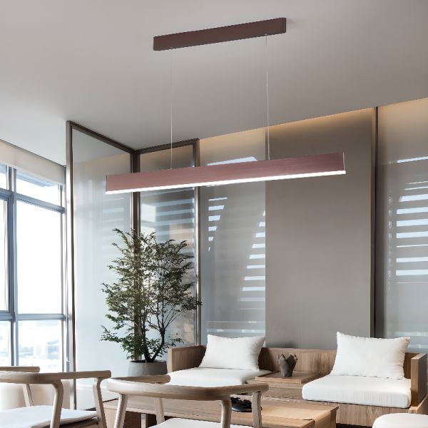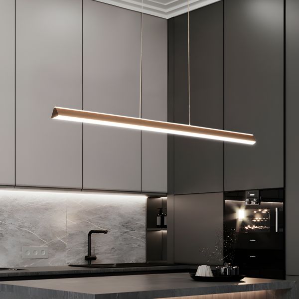 Minimalist Linear LED Island Pendant, Architectural Suspension Bar Light with Adjustable Height