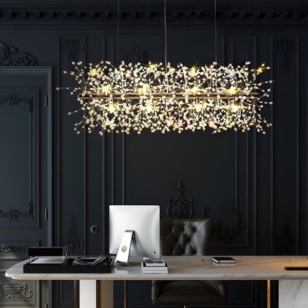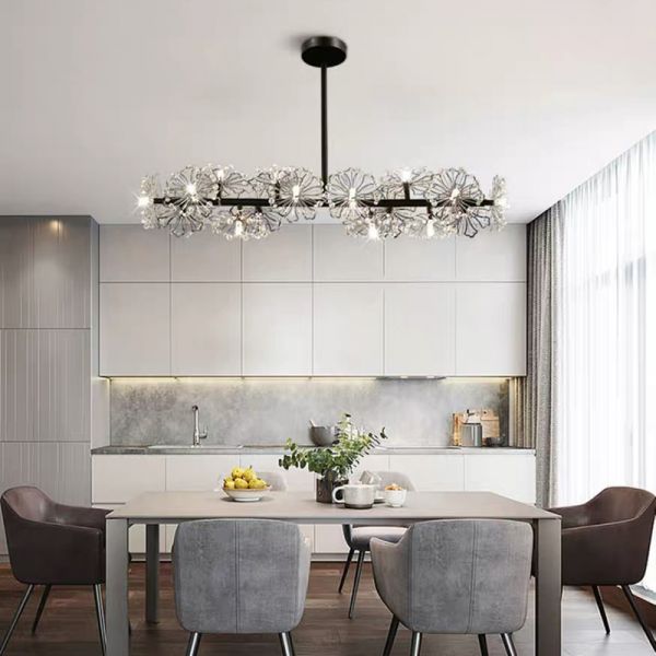 Contemporary Crystal Firework Linear Chandelier Dandelion Island Pendant Lighting