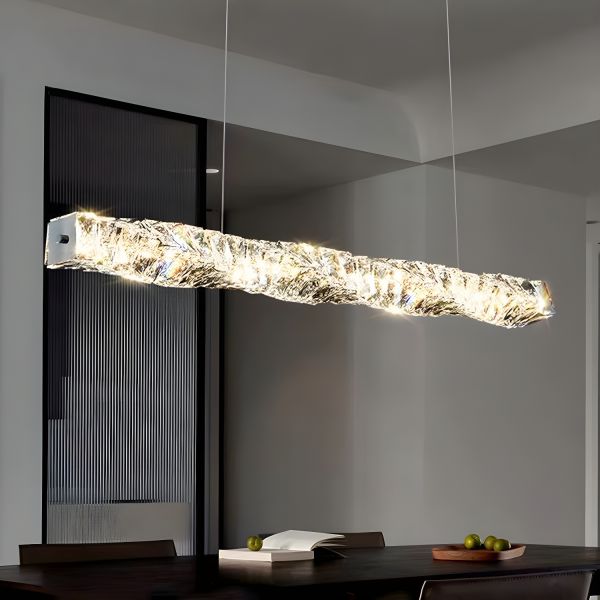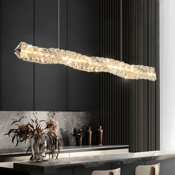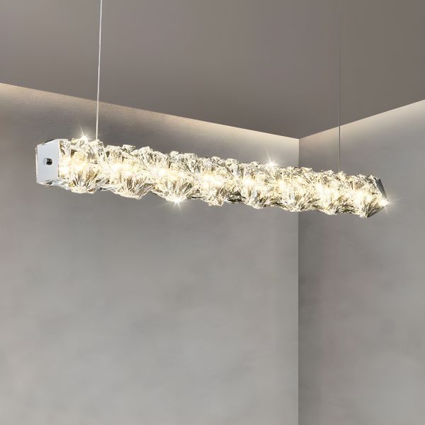 Luxury Crystal Linear Chandelier, LED Island Pendant Light with Faceted Prism Bar
