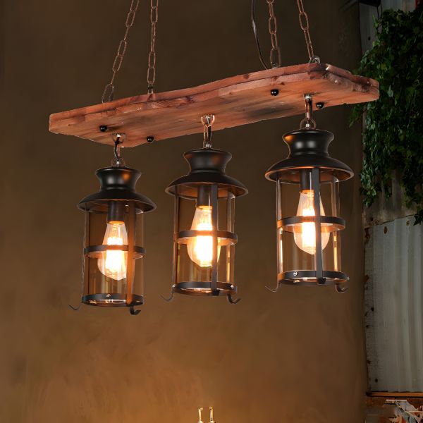 Industrial Farmhouse Wood IslandChandelier, 3-Light Linear Hanging Fixture