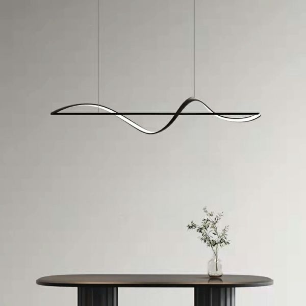 Contemporary Minimalist LED Wave Pendant Light, Linear Island Chandelier for Dining Room