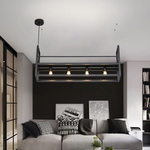Industrial Black Metal Linear Island Pendant Light, 4-Light Fixture