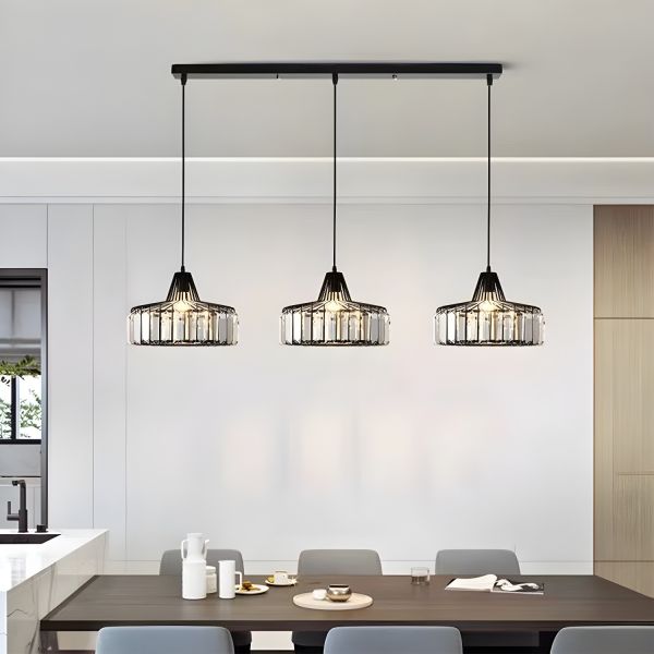 Transitional Glam 3-Light Linear Island Pendant, Metal Cage Chandelier with K9 Crystal Accents