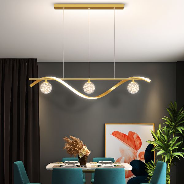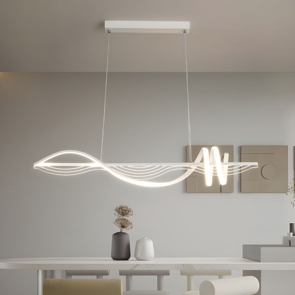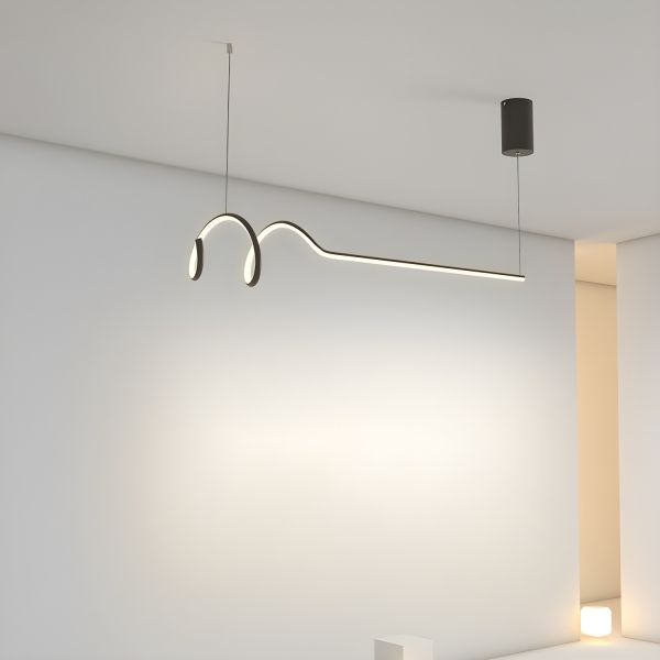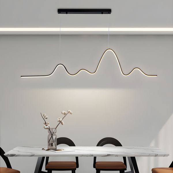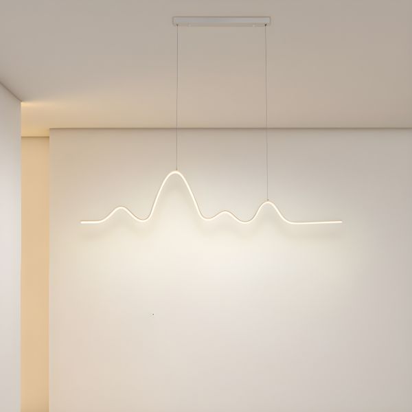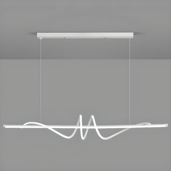 Minimalist Linear LED Island Light, Sculptural Wave Suspension Lamp with Aluminum Body for Kitchen Island or Dining Room