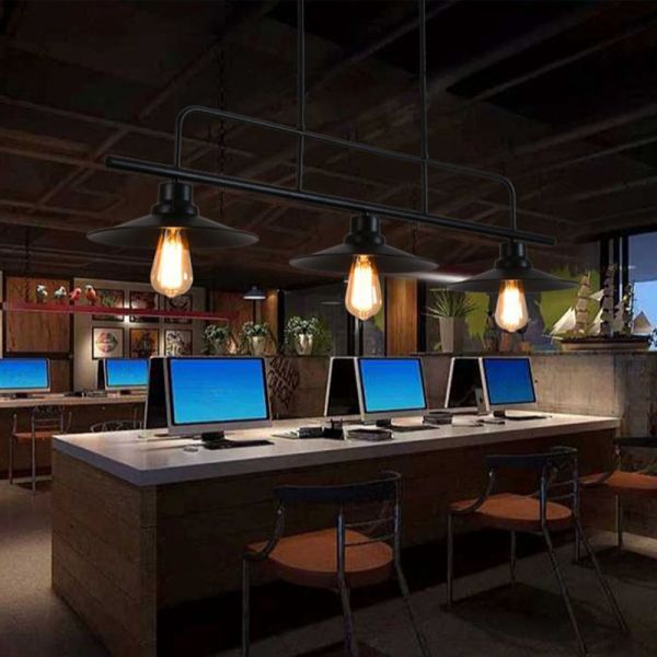 Industrial Linear Pendant Light, Kitchen Island Fixture with Brass Accents, Retro Farmhouse Style