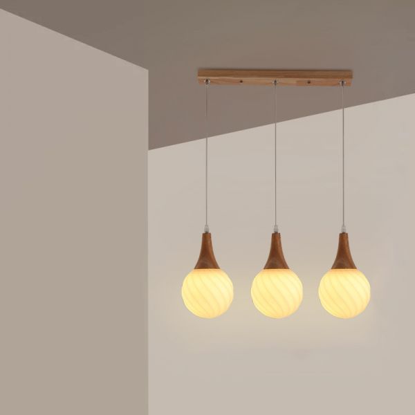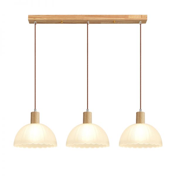 Scandinavian Solid Wood Island Pendant Light, Frosted Glass Hanging Lamp for Kitchen Island