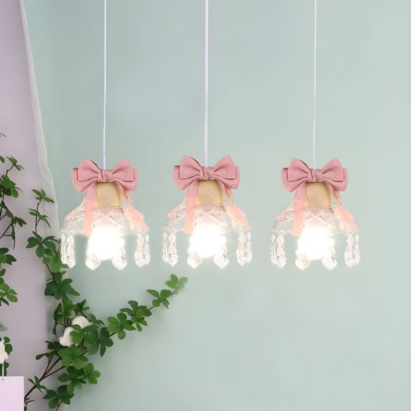 Whimsical Coquette Glass Island Light with Pink Fabric Bow and Sparkling K9 Crystal Accents