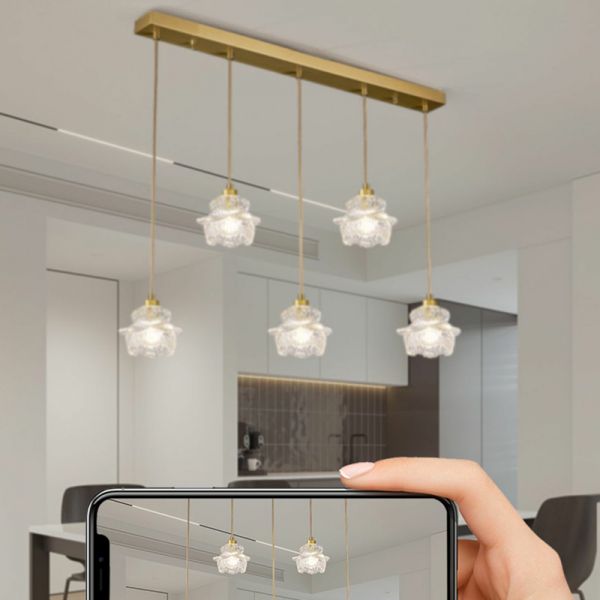 Contemporary Linear Island Pendant Light, Adjustable Chandelier with Textured Floral Glass Shades