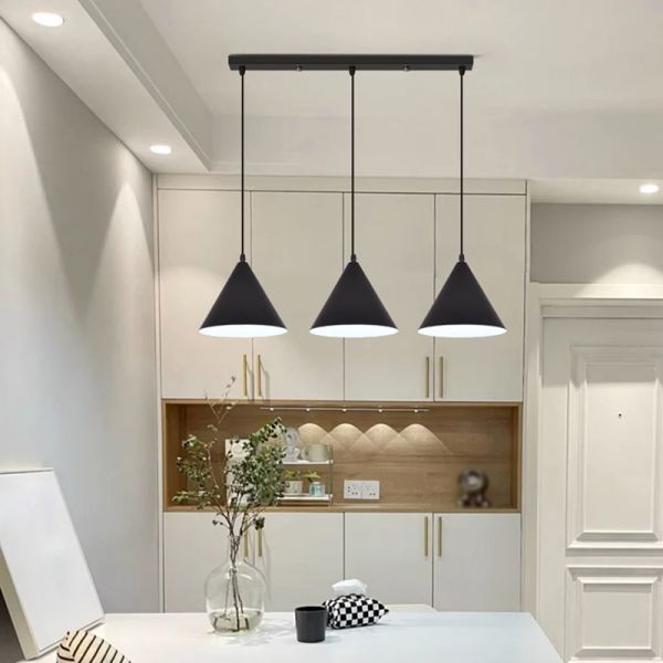 Minimalist 3-Light Linear Island Pendant, Matte Metal Cone Shade Fixture