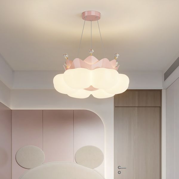 Nordic Floral Petal LED Ceiling Light with Crystal Accents & Soft Glow - Pink Downrods 110V-120V 16"