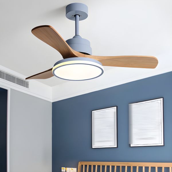 Scandinavian Solid Wood Ceiling Fan with Dimmable LED Light & Silent DC Motor - 110V-120V Grey Third Gear (Warm/White/Neutral Light of Dimming) 42"