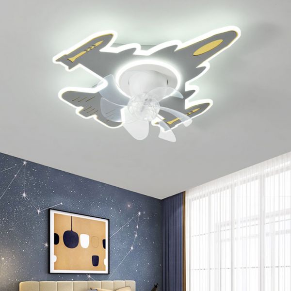 Whimsical Airplane Flush Mount Ceiling Fan with 360° Oscillating Airflow & Dimmable LED - 110V-120V Grey