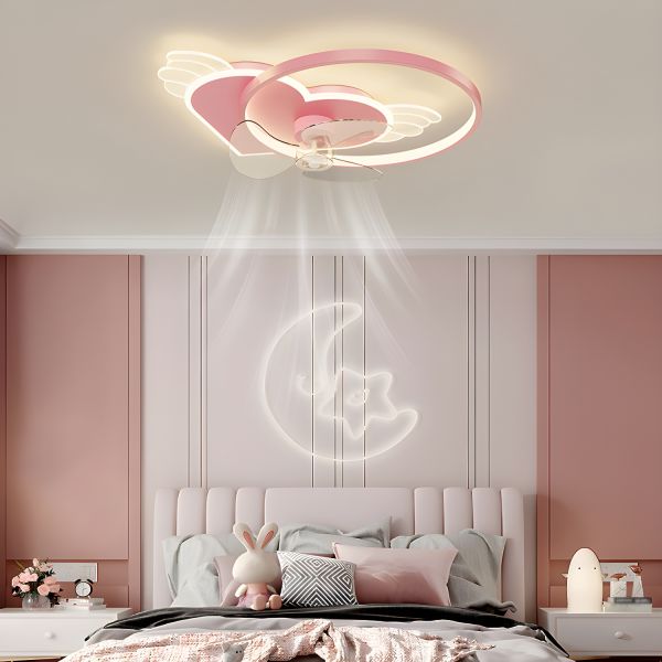 Whimsical Heart Flush Mount Fandelier with Dimmable LED & 6-Speed Silent Motor - 110V-120V Remote Control Stepless Dimming