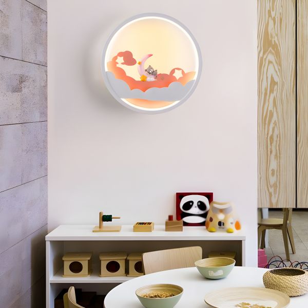 Kid Wall Mount Light LED Resin Wall Light with Acrylic Shade for Bedroom - 110V-120V Moon White White Light