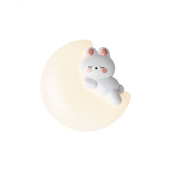 Whimsical Kids' Character Wall Sconce Soft Glow LED Night Light for Nursery & Bedroom - 110V-120V Rabbit Moon