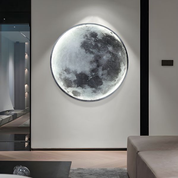 Lunar Art LED Wall Lamp - Realistic Moon Light for Bedroom, Living Room & Home Theater - 110V-120V 24 cm White Light