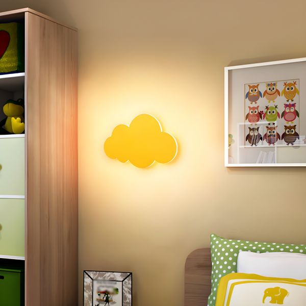 Scandinavian Cloud Wall Sconce LED Nursery Night Light with Soft Acrylic Diffuser - 110V-120V Yellow 8.5" White Light