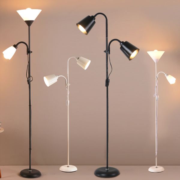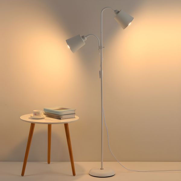 Functional Contemporary Dual-Head Floor Lamp Flicker-Free LED with Adjustable Arms for Living Room & Office