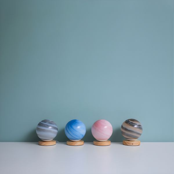Nordic Celestial Glass Planet Lamp with Dimmable Glow and Minimalist Wood Stand