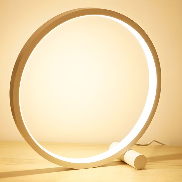 Minimalist LED Ring Table Lamp, Circular Ambient Light with Transparent Acrylic Stand for Nightstand