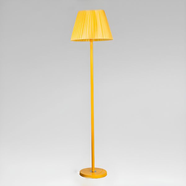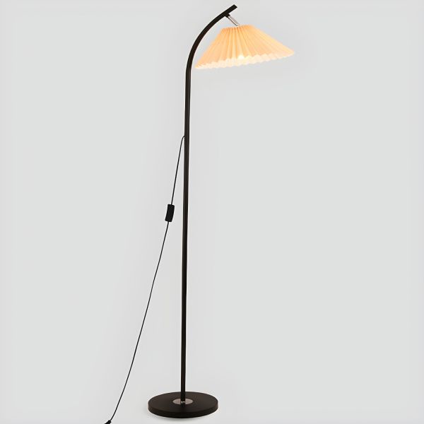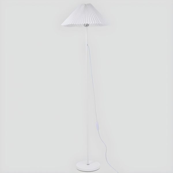 Scandinavian Pleated Floor Lamp with Fabric Cone Shade and Weighted Round Base