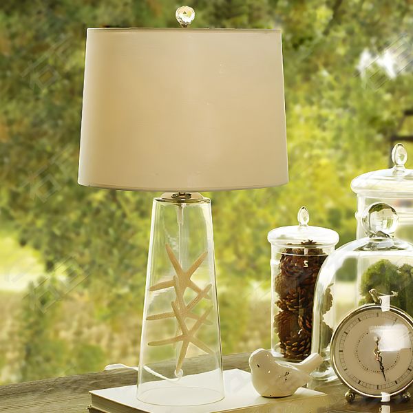 Transitional Clear Glass Fillable Table Lamp with White Fabric Drum Shade