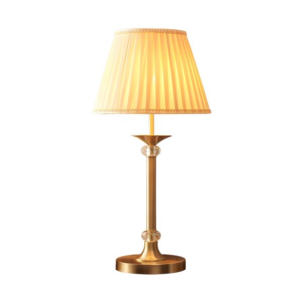 Transitional Brass Gold Table Lamp with Pleated Fabric Shade for Bedroom and Living Room