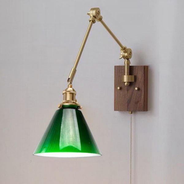 Olive Green Brass Wall Sconce with Shade Fixture, Down Glass Shade for Residential Use, Lampshade Included, 110V-120V