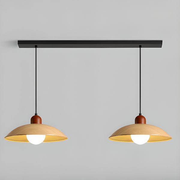 Bi-pin Pendant Lamp, Wood-Toned Shade, Iron Material, String Mounting, 1 Light, Direct Wired Electric, 110V-120V