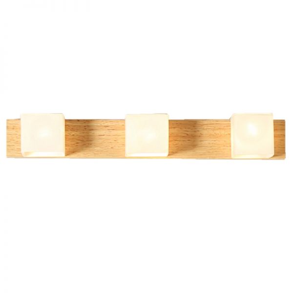 Scandinavian Solid Wood Bathroom Vanity Light with Rotatable Frosted Cube Shades - 110V-120V 3