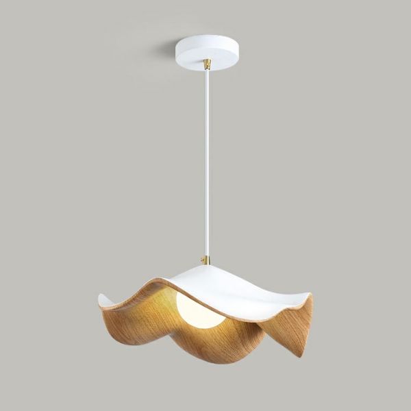 Japandi Wavy Pendant Light, Organic Resin Shade with Wood Grain Finish for Dining & Kitchen - 110V-120V Wood Color