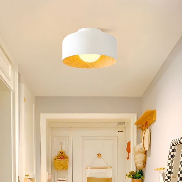 Scandinavian Angled Flush Mount Light, Metal Ceiling Fixture with Warm Wood Grain Accent - White 110V-120V