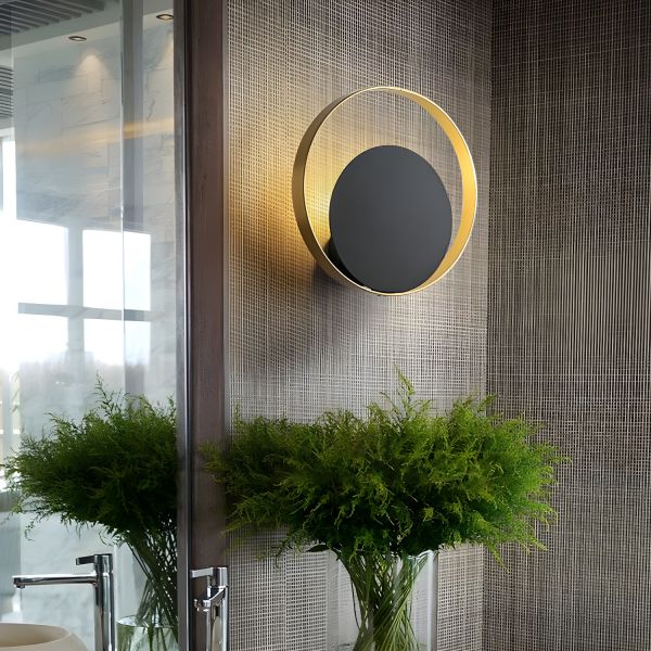 Contemporary Round Wall Sconce, Gold and Black Eclipse Design, Indirect Ambient LED Light - 110V-120V Black/Gold