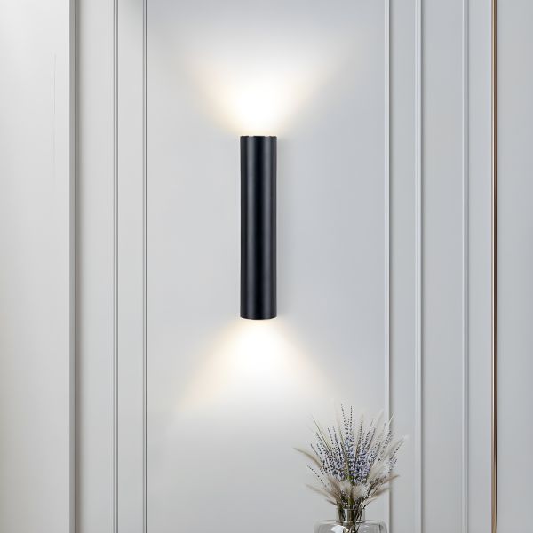 Minimalist Aluminum Cylinder Wall Sconce, Up Down Lighting Fixture with Anti-Glare Honeycomb Reflector - 110V-120V Black 8"