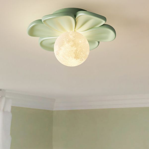 Nordic Pastel Flower Flush Mount Ceiling Light with Textured Moon Globe for Cozy Ambience - 110V-120V Green