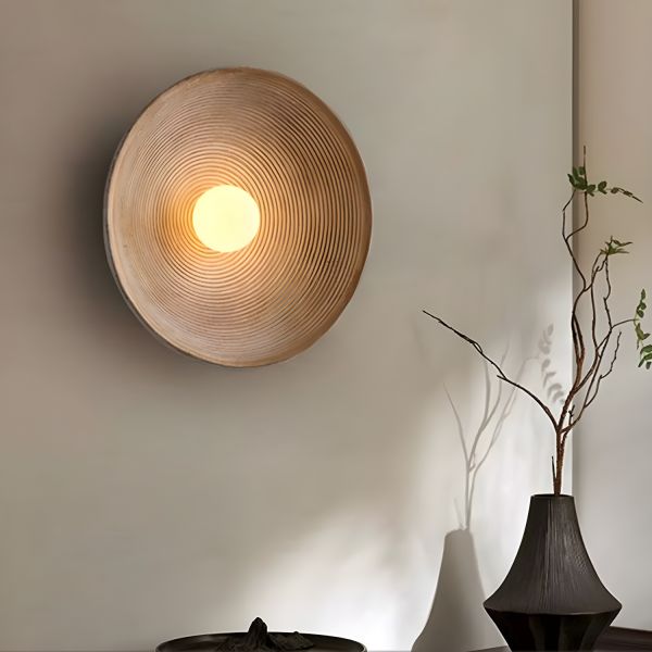 Wabi-Sabi Textured Wall Sconce, Round Resin Japandi Sconce Light, Distressed Cream Finish - 110V-120V 8"