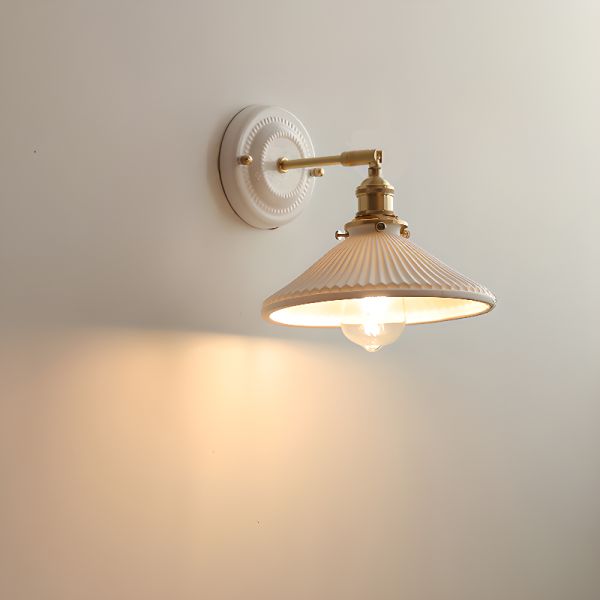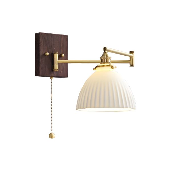 Vintage Ceramic Wall Sconce, Adjustable Brass Swing Arm Light Fixture - 110V-120V Dome