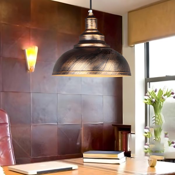 Industrial Metal Pendant Light with Adjustable Height for Kitchen Island and Dining Room - 110V-120V 12" Dome