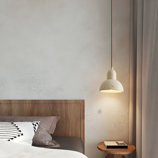 Modern Beige Stone Pendant with Adjustable Hanging Length and Round Rope Mounting - 110V-120V Dome