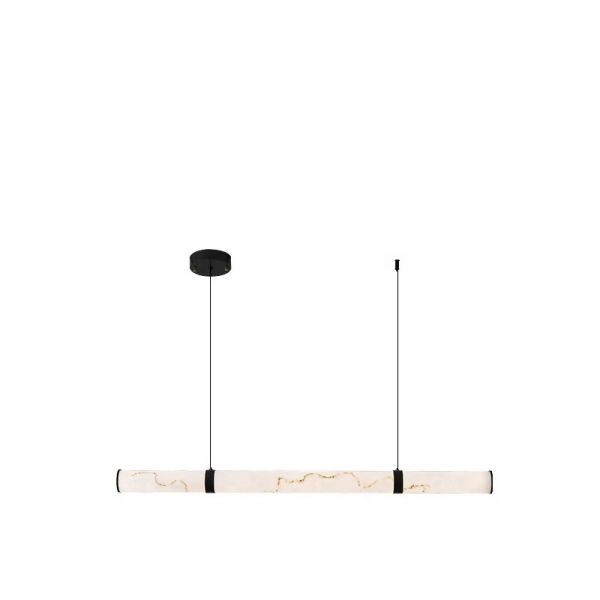Contemporary Linear Alabaster Style LED Pendant Light, Adjustable Kitchen Island Chandelier - Black 110V-120V 39.5"