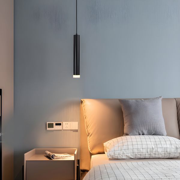 Minimalist Cylinder Pendant Light, Modern LED Tube Hanging Lamp for Kitchen Island & Bedside - 110V-120V Black 1 White Light
