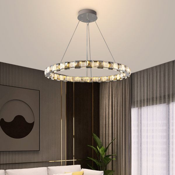 Clear Shade, Adjustable Height Pendant Light with 1 Light, Rock Crystal Shade, Third Gear Color Temperature, LED, Cord Mounting, 110V-120V, 16"