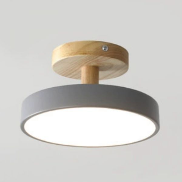 Light Gray Ceiling Sconce with White Light, 1 Light Plexiglass Shade, Metal LED Light Fixture, Surface Mount, 110V-120V, Round